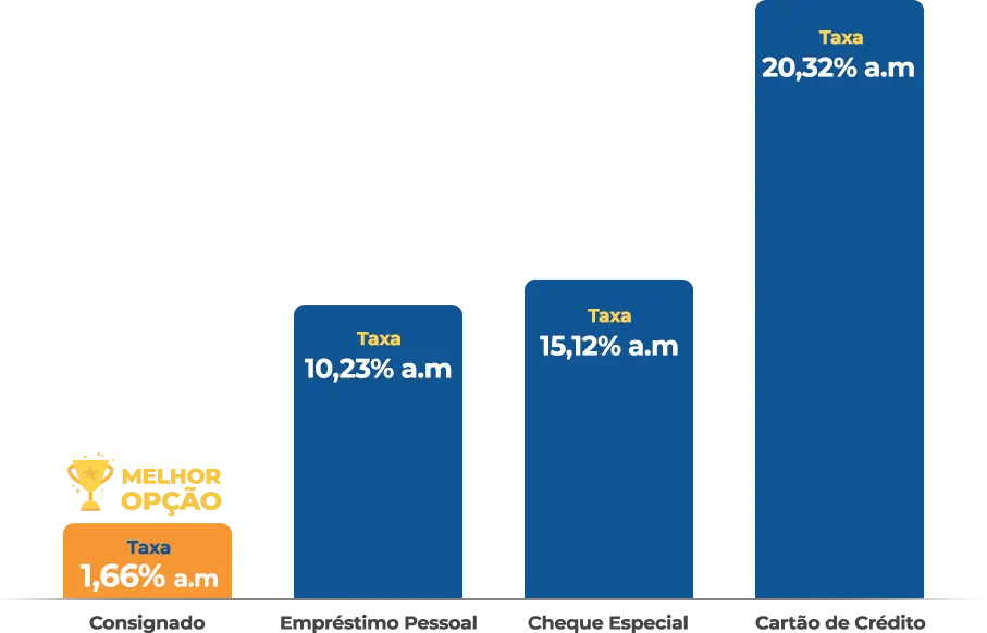 O consignado possui a menor taxa de juros do mercado e desconta diretamente no contra-cheque.